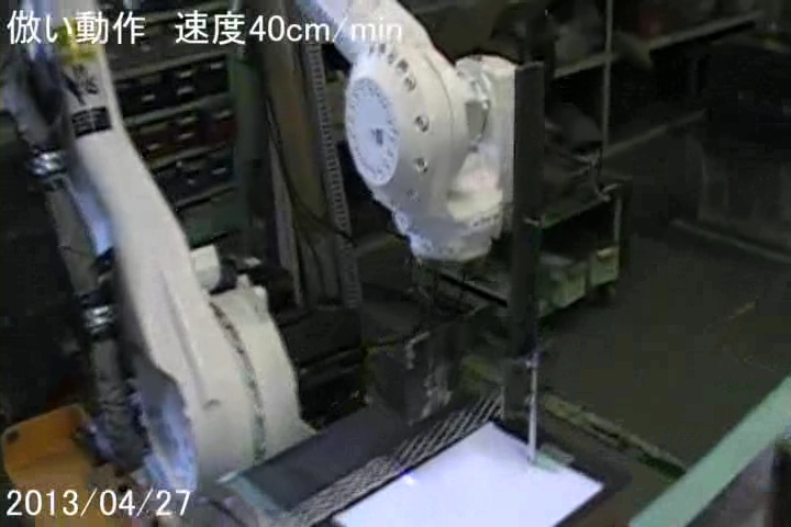 ウィービングしながらの溶接倣いは難しいといわれておりますが、本システムではウィービング自体も ロボットインストラクションを使用せずに、上位からの指令で動かすためセンサーの検出ポイントも 正確に把握できるためウィービング中にセンサーが左右に動いても正確な位置で検出できます。 又センサーは溶接トーチより前に設置されているため、俗に言う「トラッキング」制御も実現しています。 |